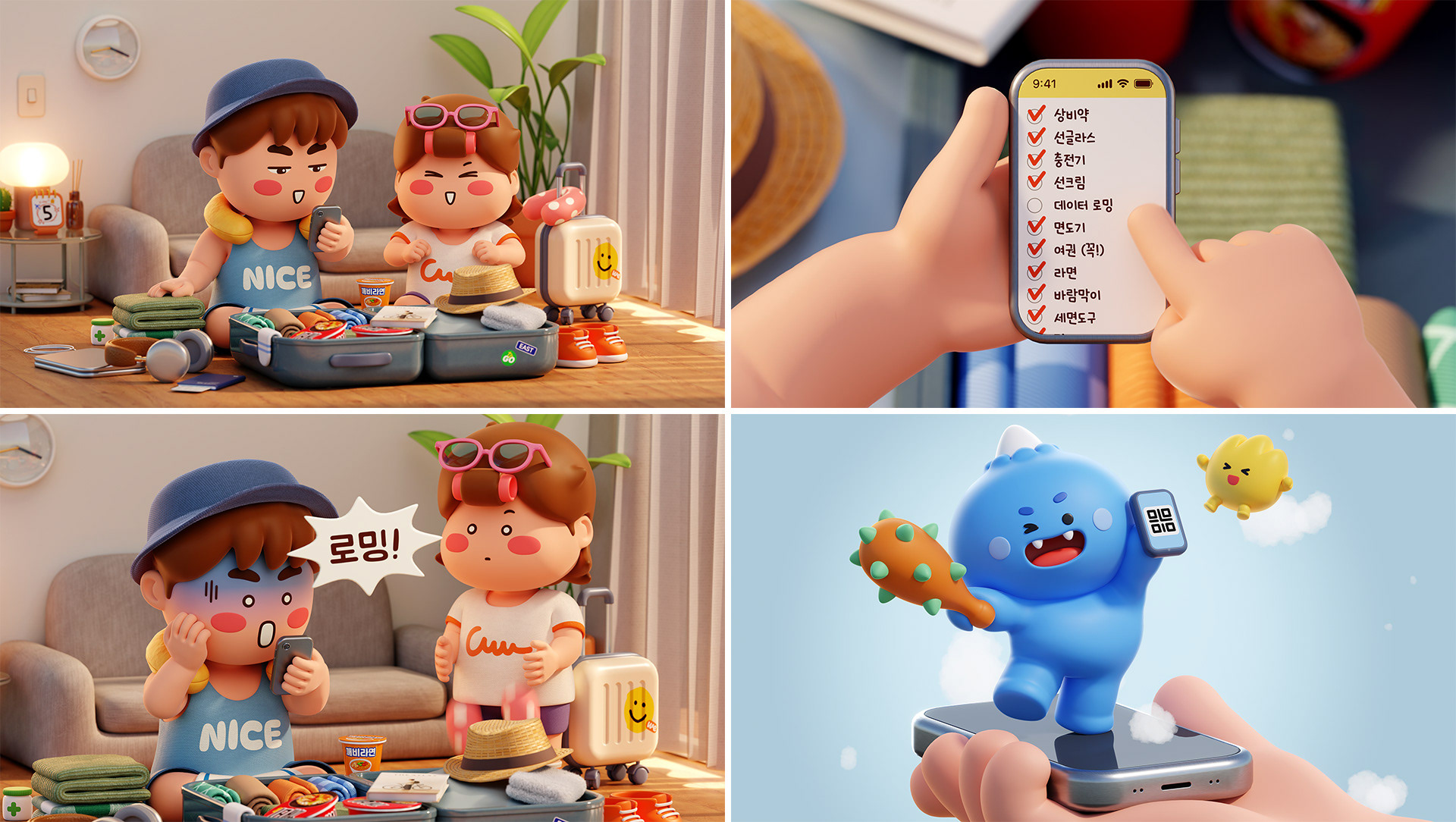 캐리그로우는 국내 최초 eSIM 스토어 '로밍도깨비'의 브랜드 필름 3편을 제작했습니다. 로밍도깨비는 2030 고객층 사이에서 두터운 인지도를 확보하고 있는 eSIM 앱 다운로드 1위 브랜드입니다. 브랜드 필름은 캐릭터를 활용한 공감 에피소드를 통해 서비스의 편의성과 무제한 가성비, 365일 고객센터 운영을 효과적으로 전달했으며, 인천공항 내 OOH와 공항리무진 버스 쉘터에 게재되었습니다.